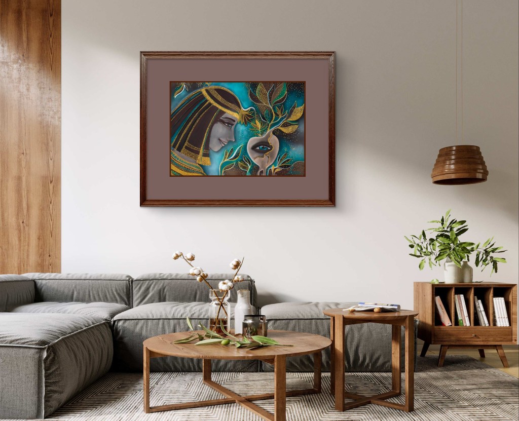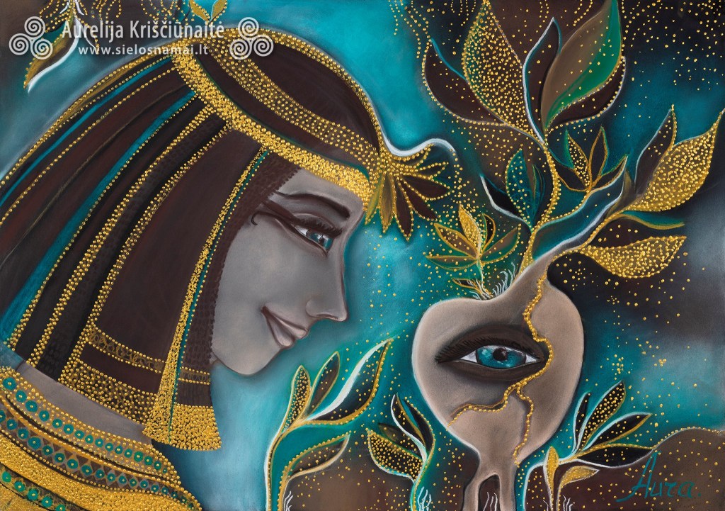 Tad jeigu jauti, kad ir tau reikia Izidės gebėjimo mylėti besąlygiškai, jos gydančio prisilietimo, galinčio mus grąžinti į pirminę vientisą būseną, prieš patiriant savo pirmąją traumą, šis paveikslas gali būti tavo.