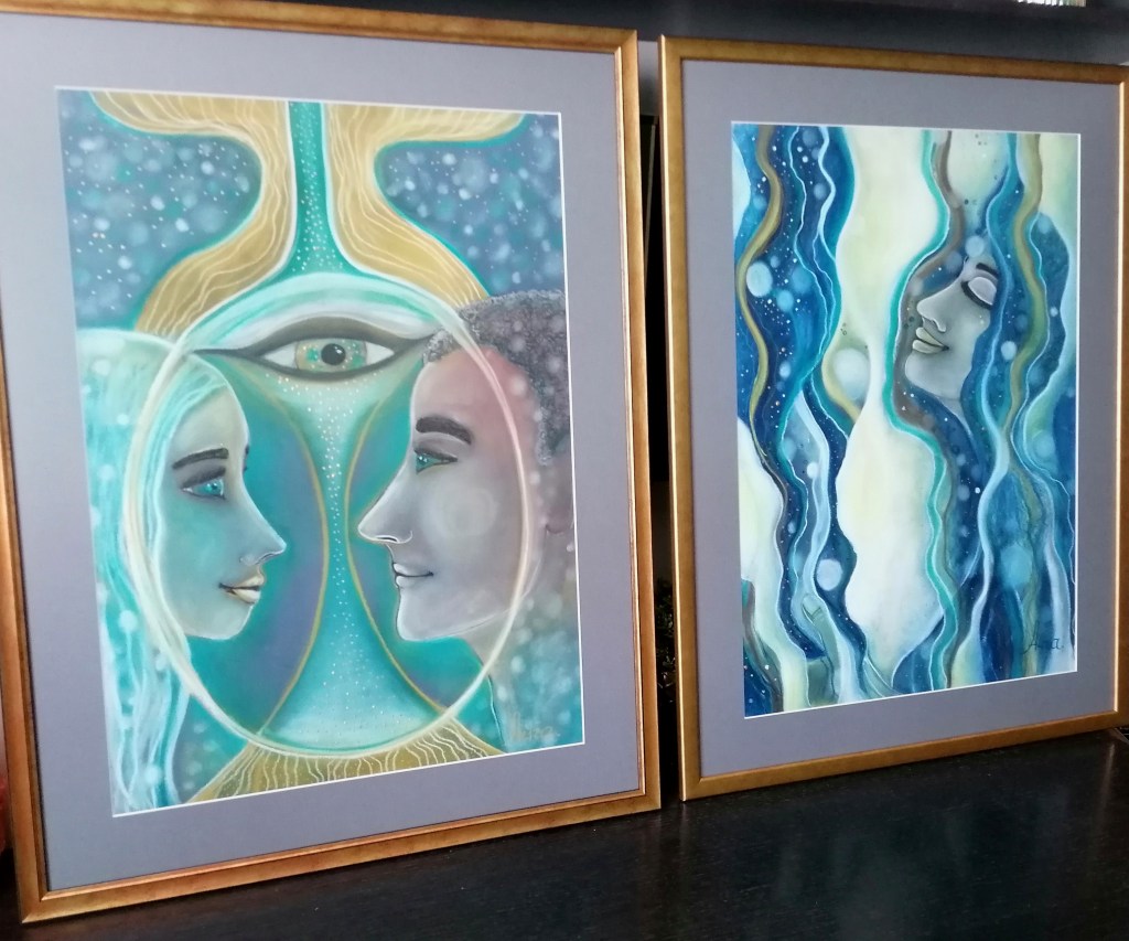 Šis pastelės darbas tobulai skamba drauge su neseniai mano publikuotu kūriniu RYŠYS. Taip susijungia palaimintos moters būsena, iš kurios gimsta taika tarp vidinio vyro ir moters, o tai, savo ruožtu, įgalina sukurti darnų ir tikrą ryšį asmeniniuose santykiuose su partneriu… Todėl abu darbai buvo suderintai įrėminti ir kabės toje pačioje nuostabios moters namų erdvėje, skleisdami jai savo šviesą ir palaiminimus. Kitaip būti ir negalėjo. Jie sukurti būti drauge…