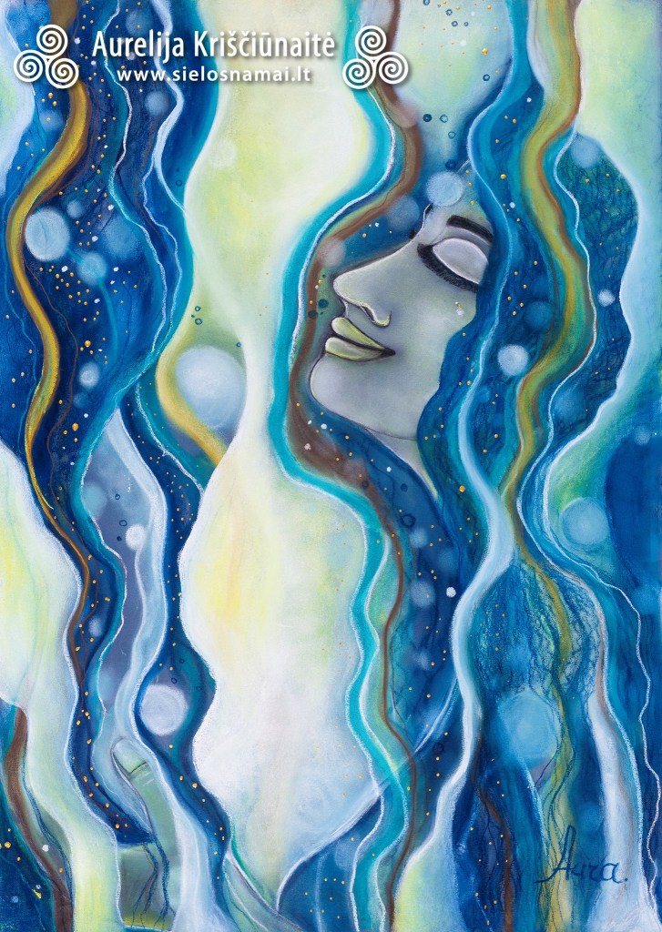 Visiškos palaimos, pasitikėjimo vedimu, lengvumo, į delnus vis byrančios gerovės ir dangaus manos jausmas… Man jis toks pažįstamas ir saldus… O šiemet dar ir patiriamas taip dažnai, kad norėdama už jį padėkoti Kūrėjui, norėdama manifestuoti šio jausmo dar daugiau, būtent su šia būsena ėjau į kūrybinį procesą. Ir štai, jo metu gimė piešinys, kurio energija, šviesa bei tekančios per pirštus formos tai atspindi…